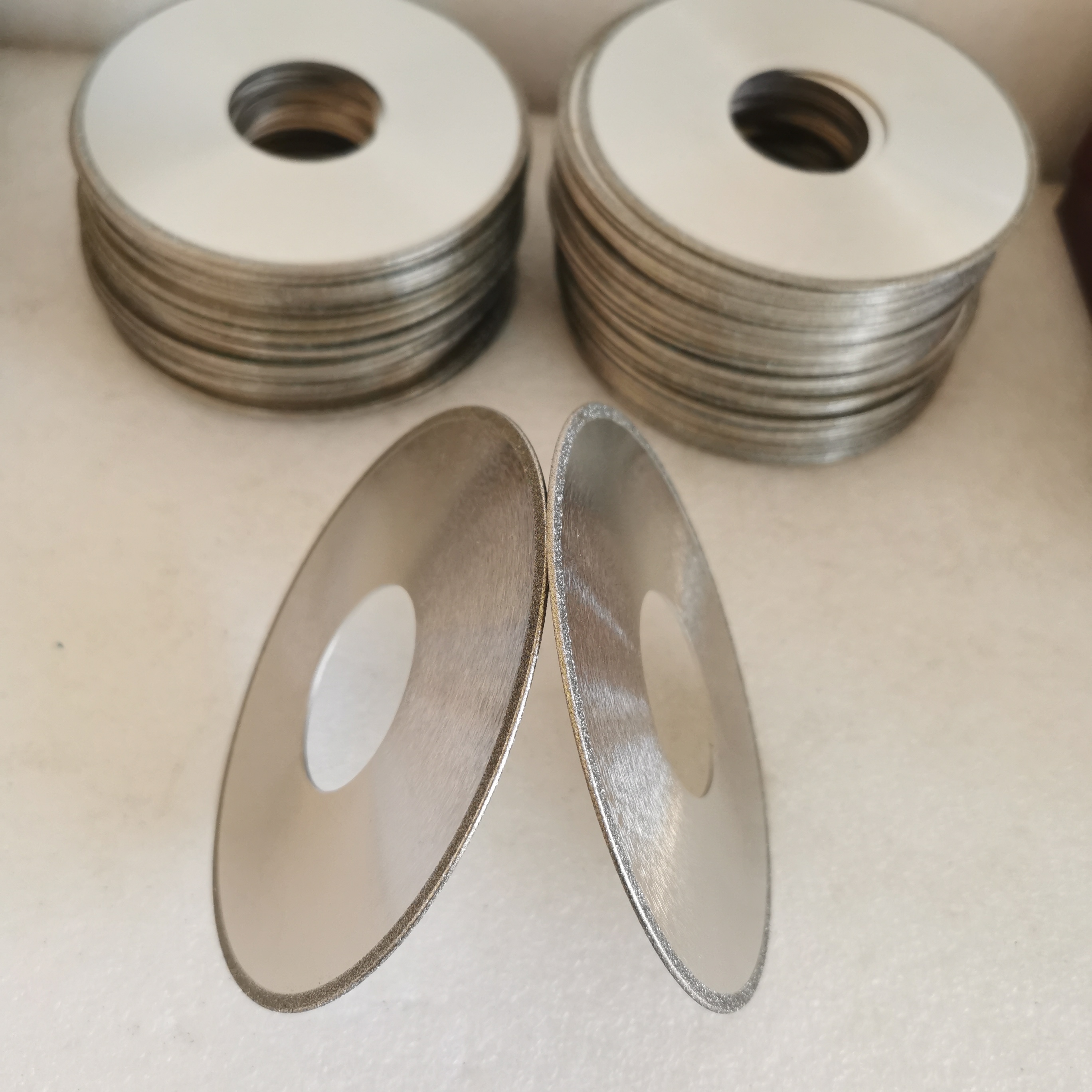 Lưỡi cưa kim cương điện áp là các công cụ cắt hiệu quả cao, chính xác cao. Sử dụng công nghệ điện áp, các hạt mài kim cương được cố định trên cơ sở lưỡi cưa.Chúng phù hợp để cắt các vật liệu cứng và dễ vỡ như thủy tinhCác đặc điểm của chúng bao gồm cắt sắc nét, không bị rạn nứt, tiếng ồn thấp, tạo nhiệt thấp và độ bền tuyệt vời.Chúng có thể được sử dụng cho cả cắt khô và ẩm.